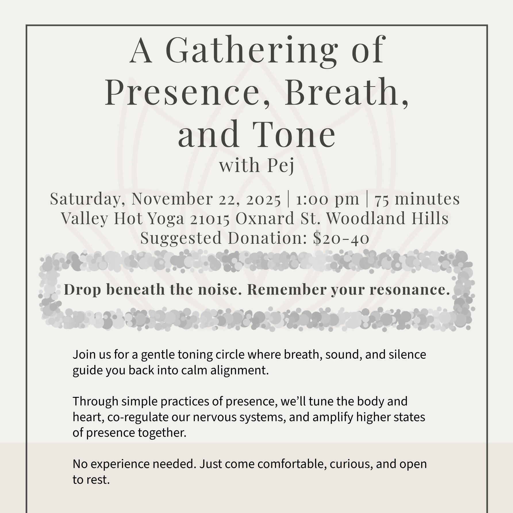 2. Tone Sessions: one-on-one attunement through breath, silence, frequency, we move beyond therapy into higher self embodiment.